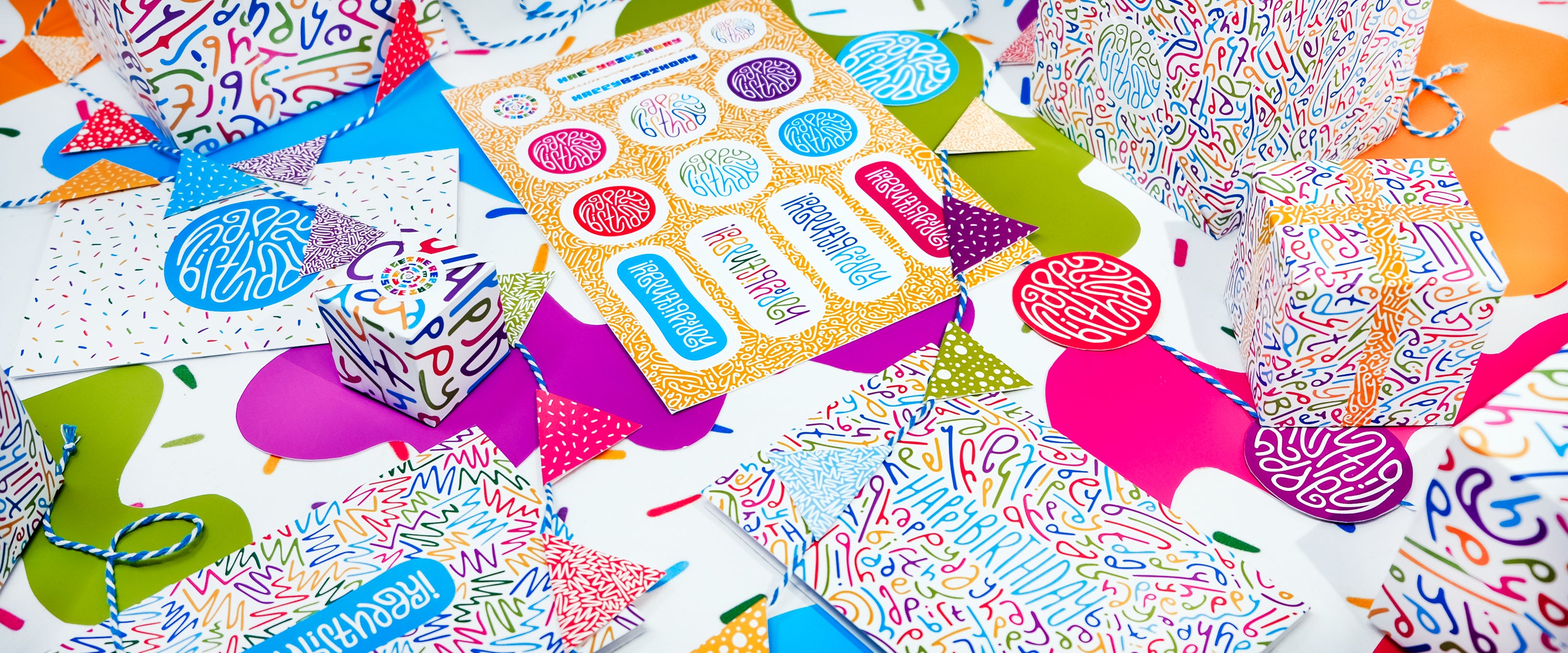 Happy Birthday Letter Pattern Wrapping Paper in Rainbow