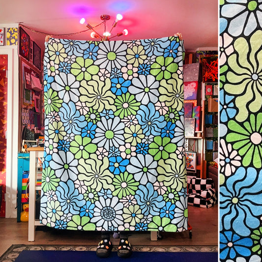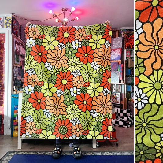 LOVE Groovy Flowers in Retro Ultra-Soft Throw Blanket