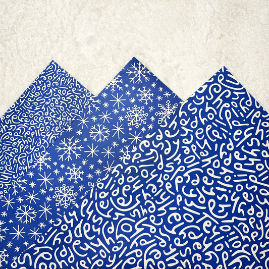 Happy Holidays Wrapping Paper: Multi-Pattern Set in Blue