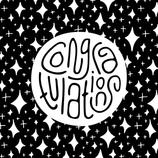 Congratulations Greeting Card: Sparkles in Black & White with Color-Me-In Inside