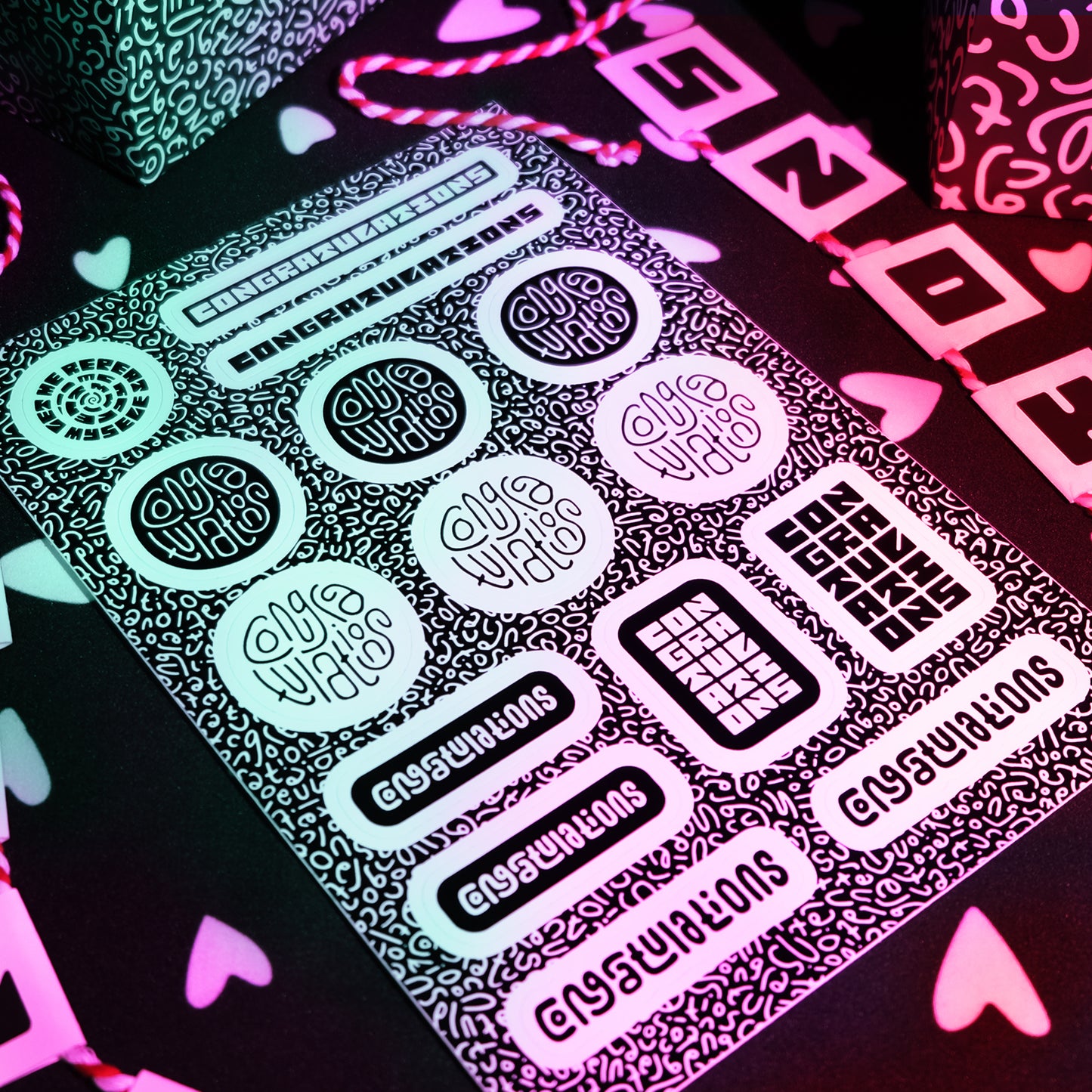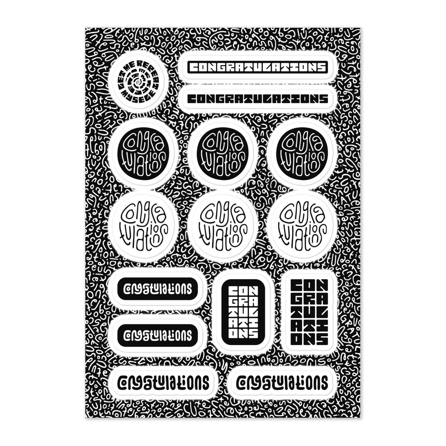 Wrapping in a pinch! Transform ANY box or gift wrapping into congratulatory gift wrapping with these glossy lettered ‘congratulations’ stickers! They also provide the perfect finishing touch for gifts wrapped in the Congratulations Letter Pattern Wrapping Paper in Black & White, or on the blank envelope that comes with the Congratulations cards in black & white.
